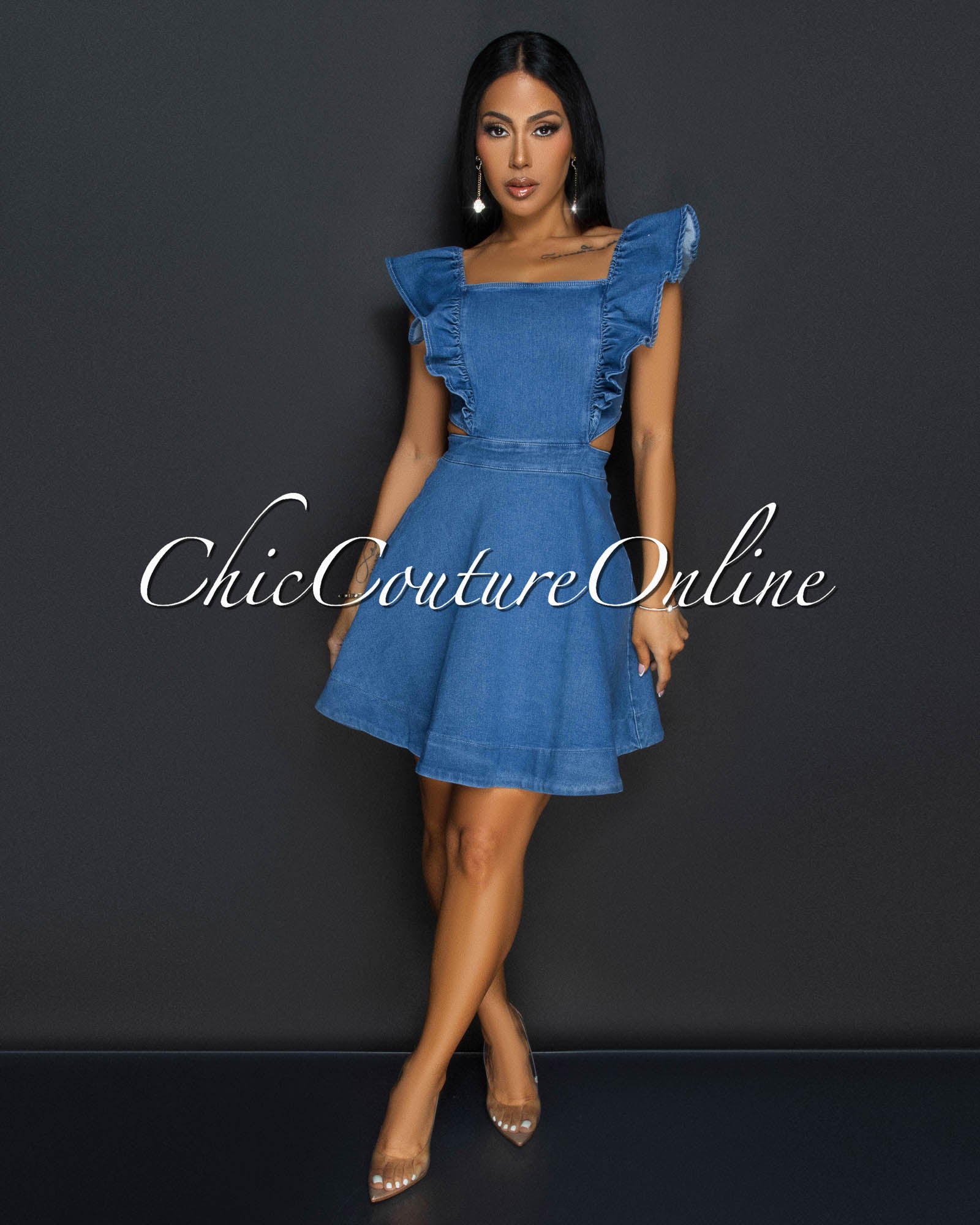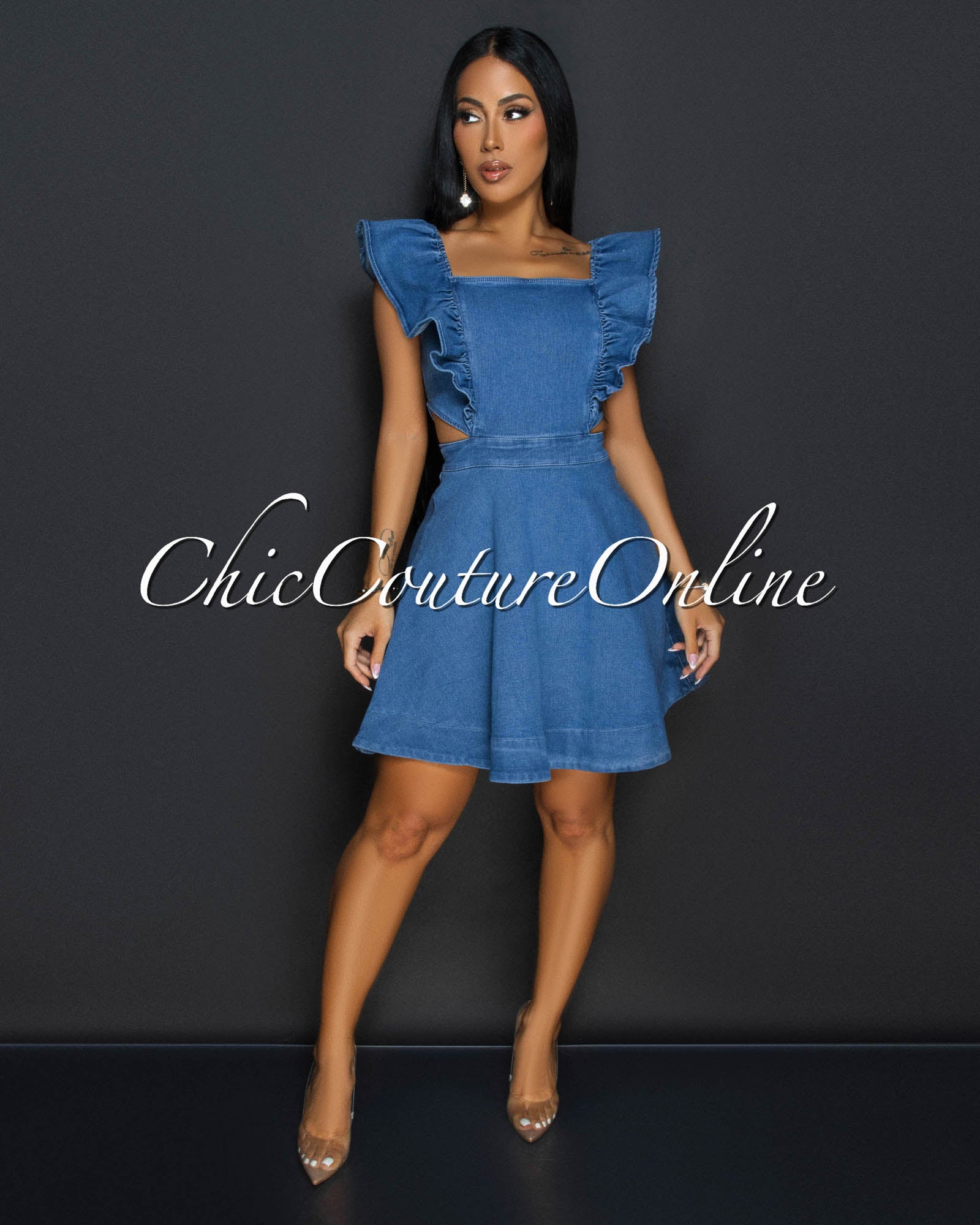 Adoria Off-White Blue Denim Trim See-Thru Duster