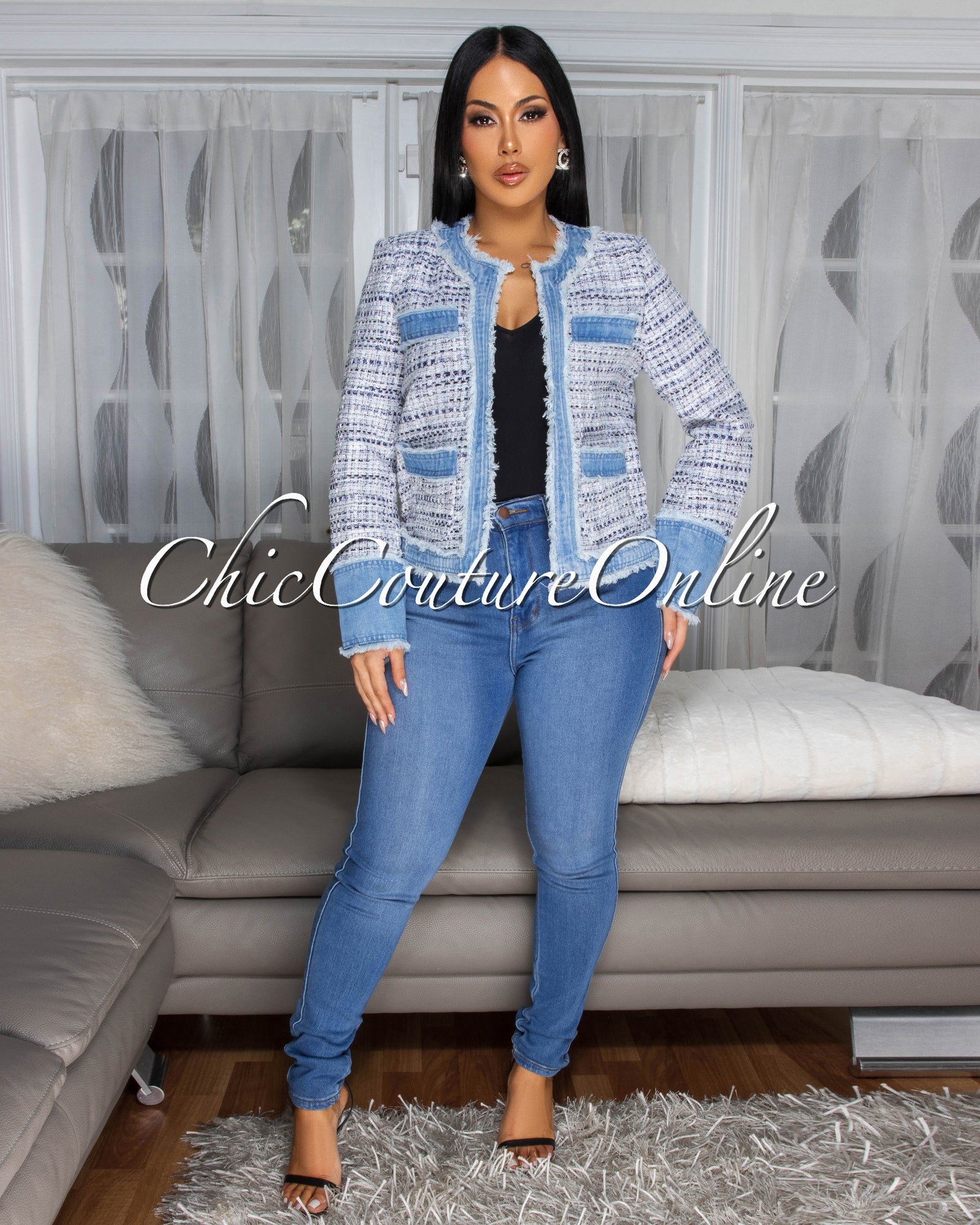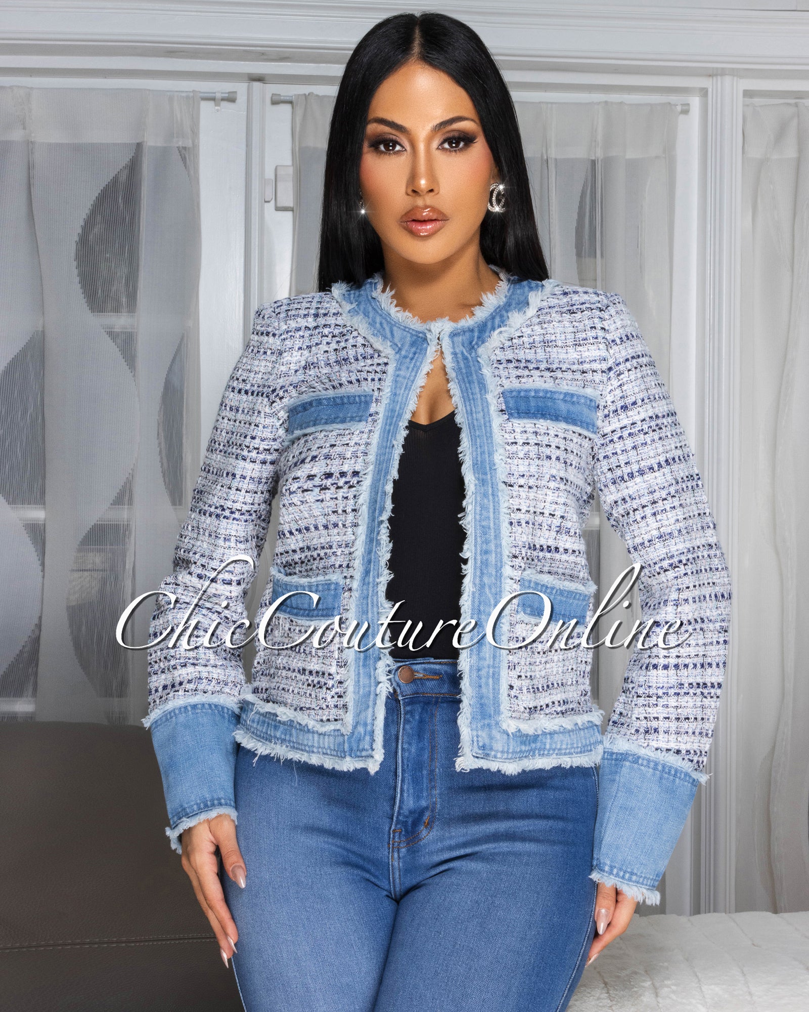 Sander Navy-Blue Denim Trim Tweed Jacket