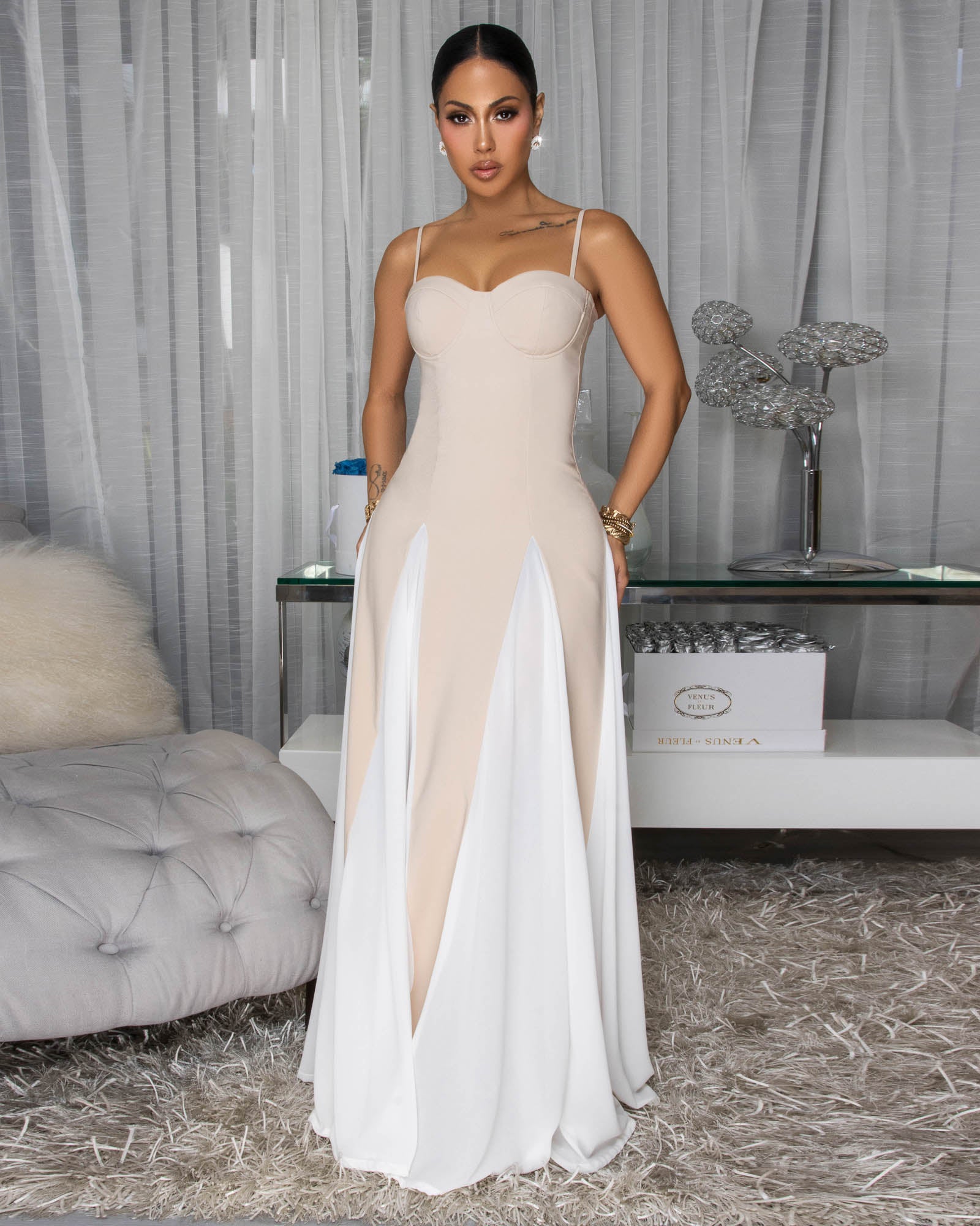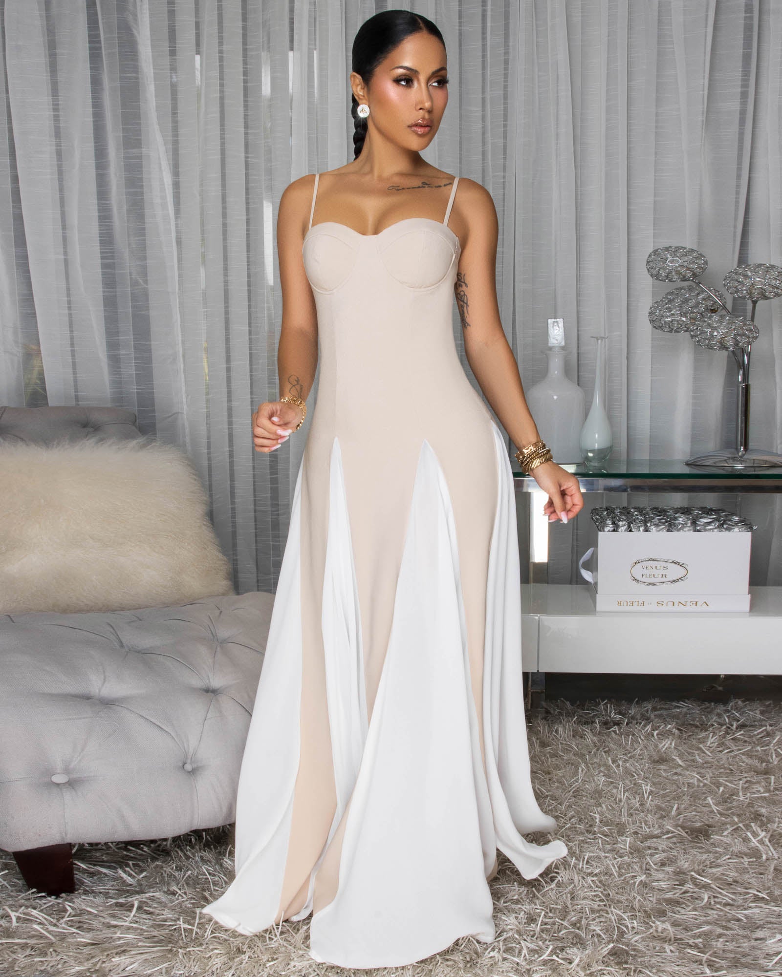 Palmero Off-White Taupe Floral Print Maxi Dress