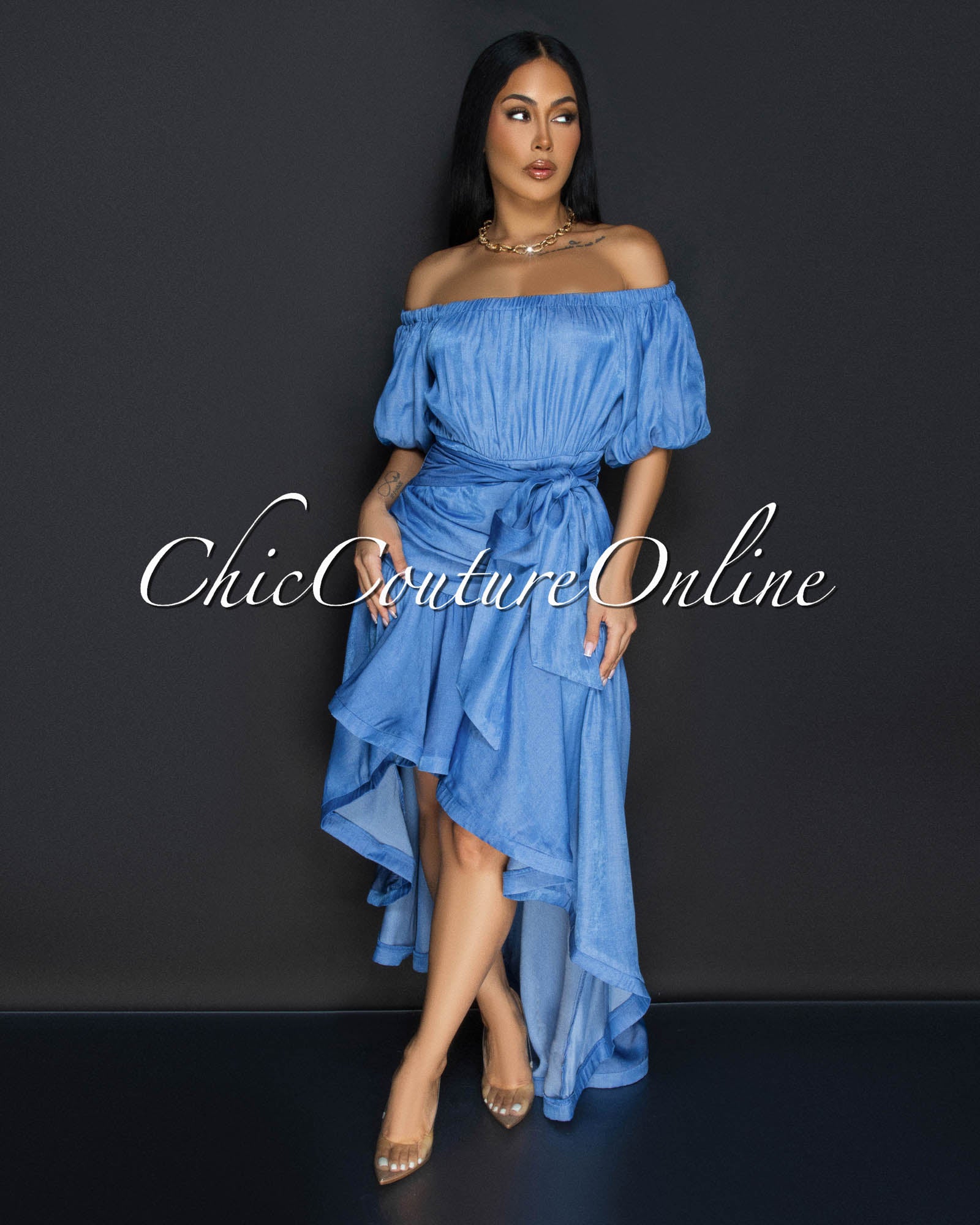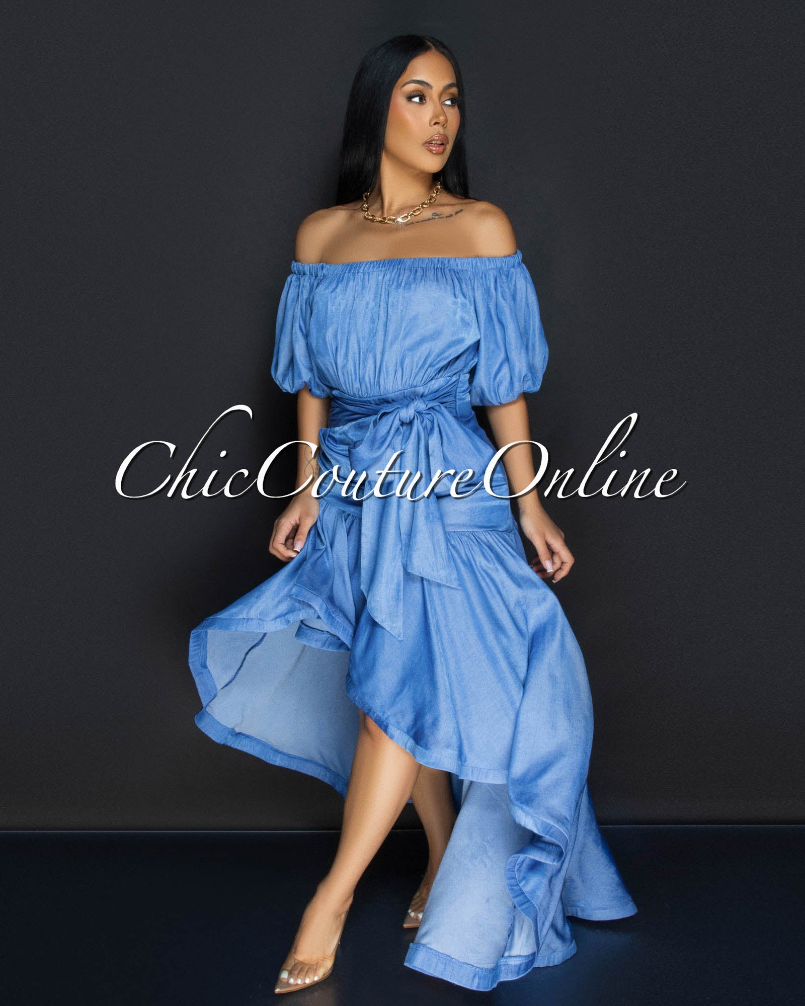 Othalia Denim Stripes Off-The-Shoulder Maxi Dress