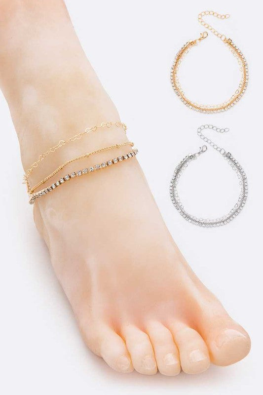 Mona Gold Layered Rhinestone Mix Chain Anklet Set