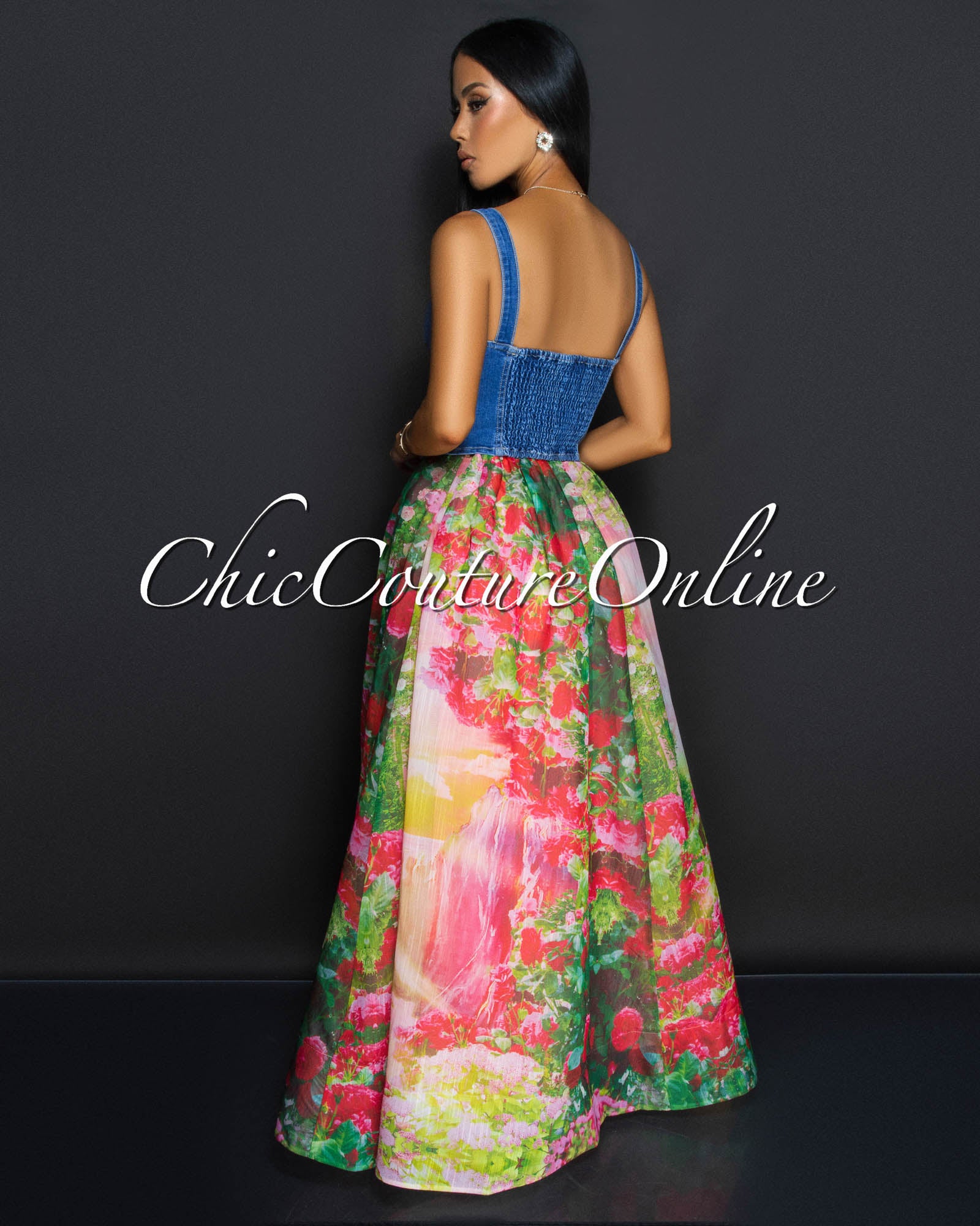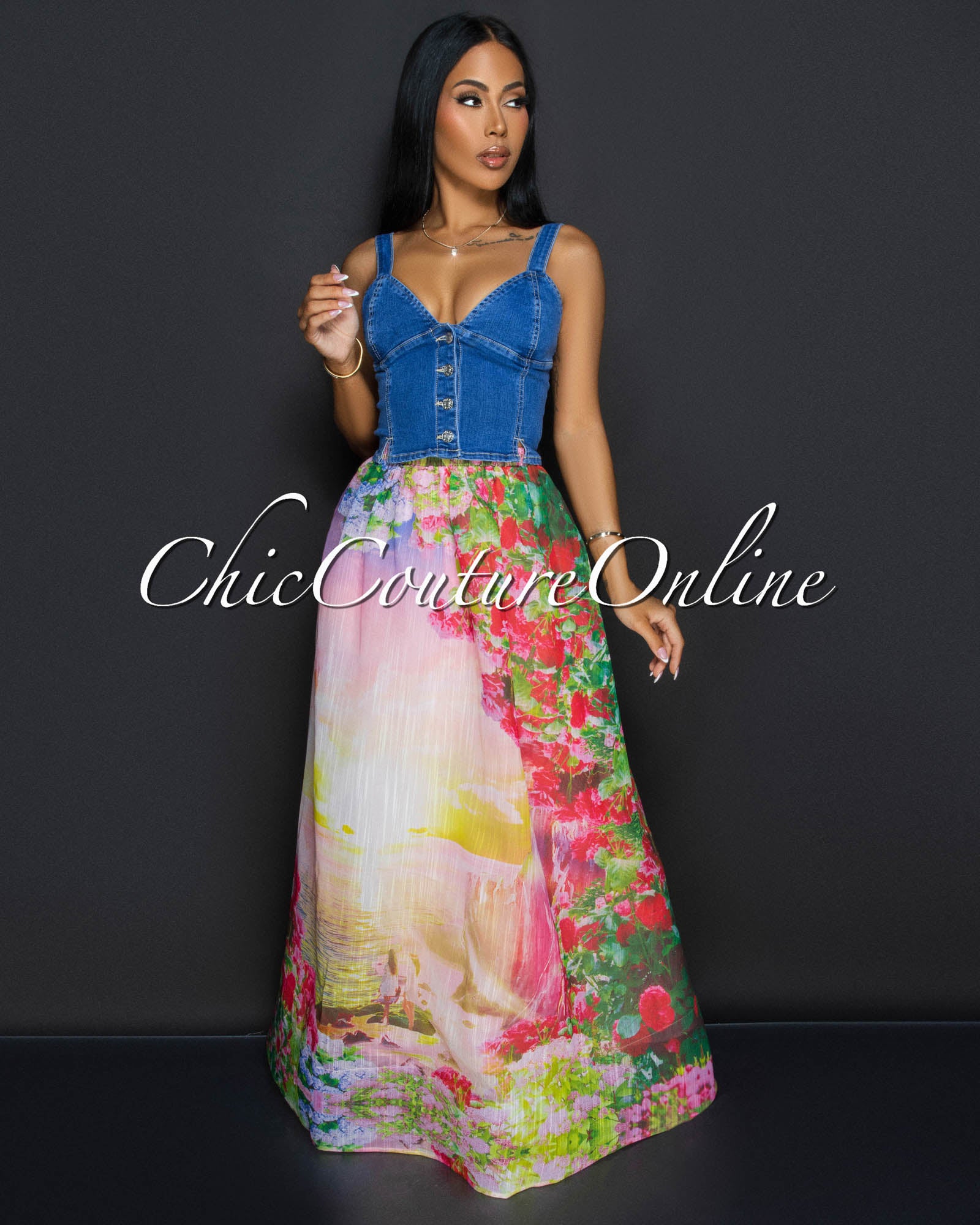 Alona Medium Denim Buttons Crop Bustier