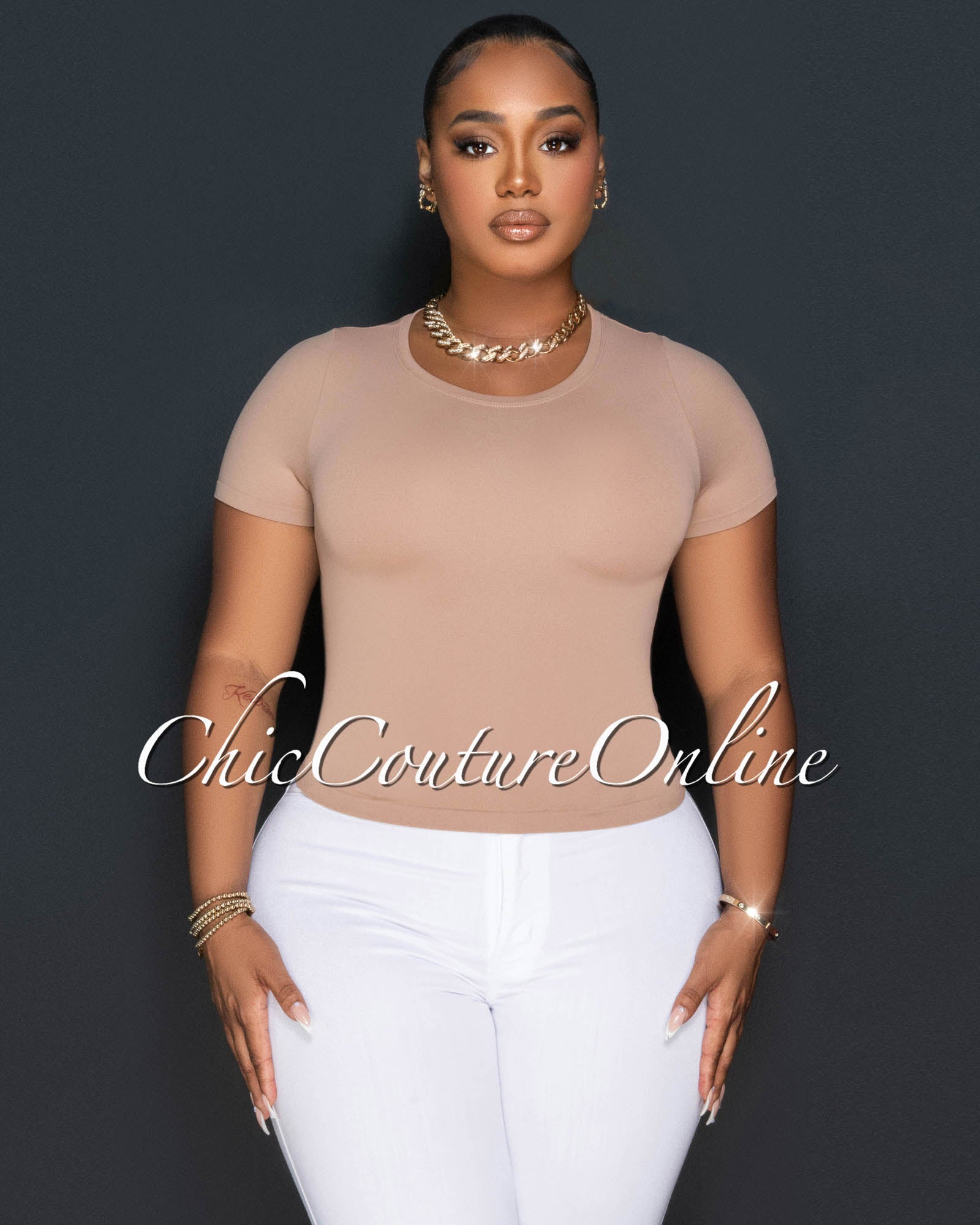 Lona Nude Round Neck Crop Top