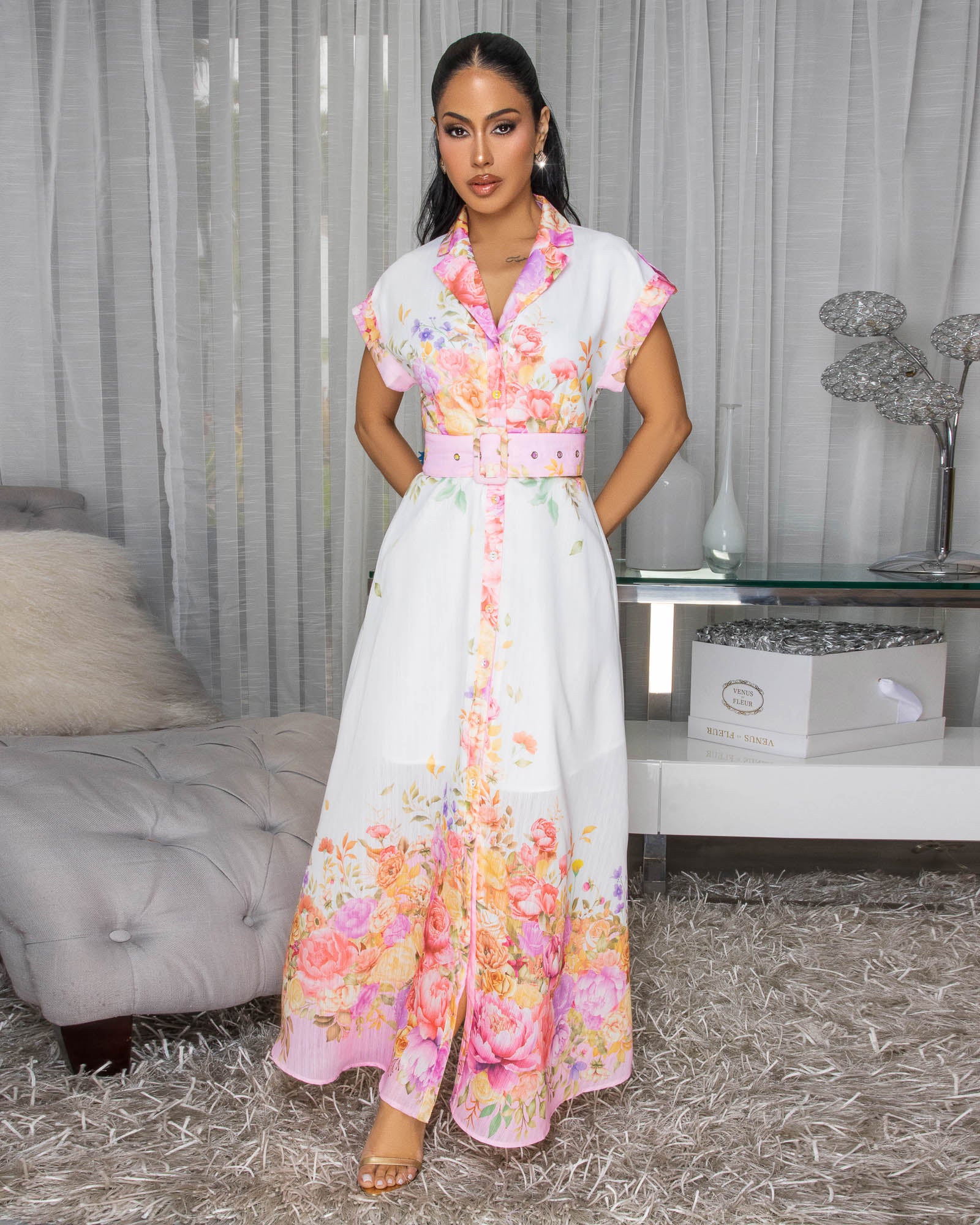 Zelda Off-White Multi-Color Floral Print Maxi Dress