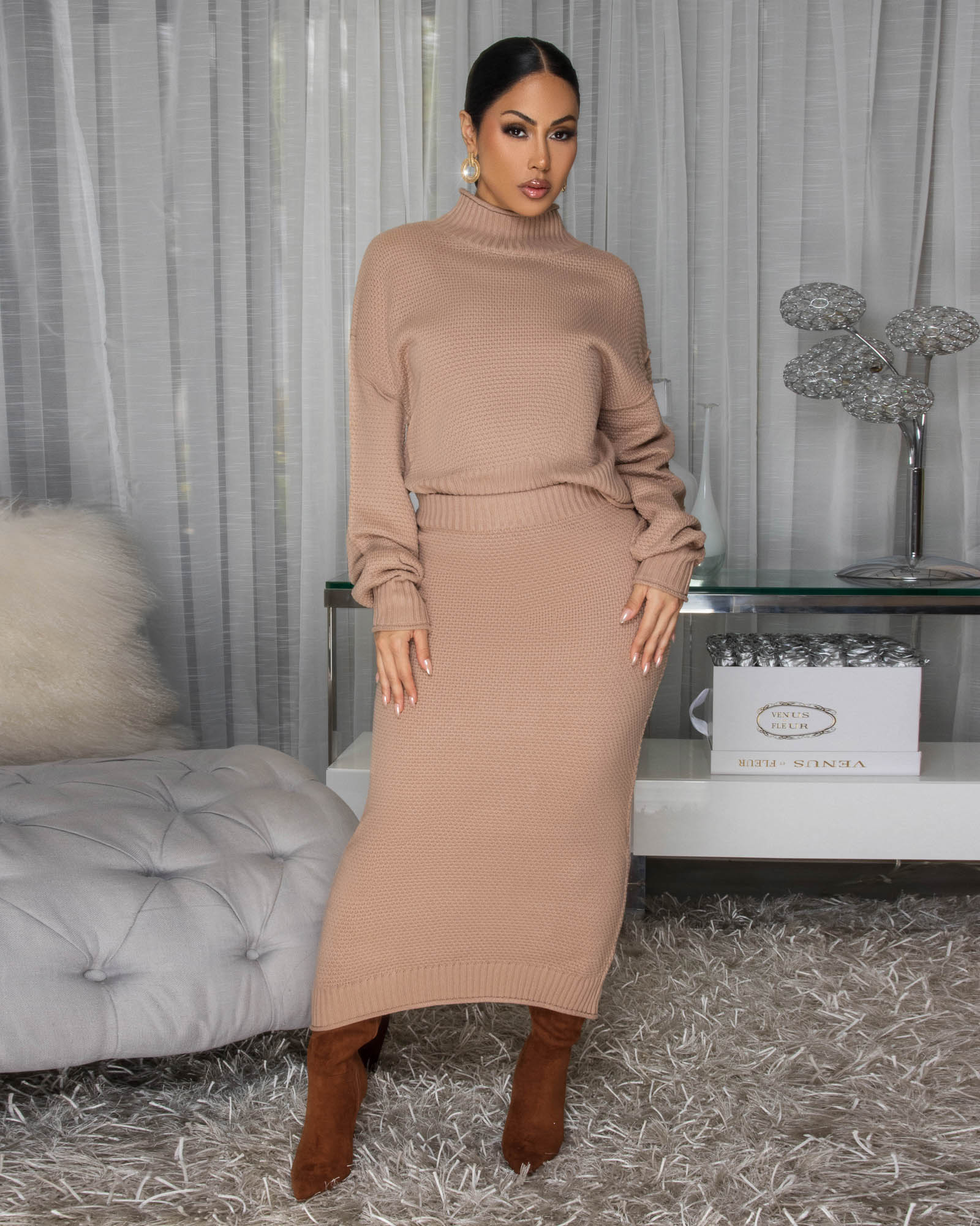 Yesenia Mocha Knit Sweater Maxi Skirt Set