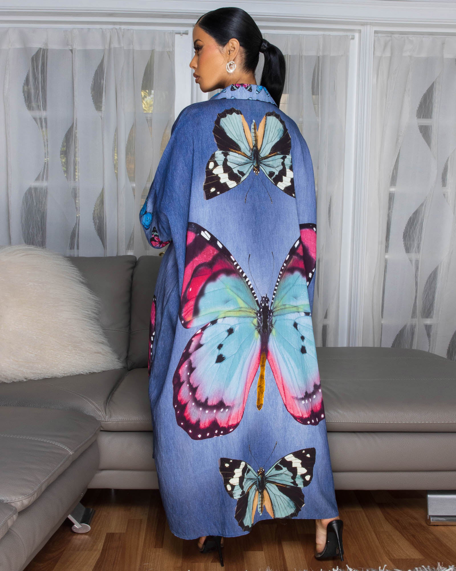 Hayes Medium Blue Butterfly Print Maxi Dress
